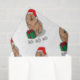 Merry Christmas Santa Claus Chow Chow - Funny, smiling, cartoon dog with a Santa hat and a Christmas present. HO HO HO! Copyright © Angi Laframboise. Cute holiday dog breed Christmas gifts for dog lovers.
