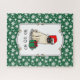Merry Christmas Santa Claus Hat Pug - Funny, smiling Pug dog wearing a Santa hat and sitting with a Christmas present with a bow and bells. HO HO HO! Copyright © Angi Laframboise. Cute Christmas holiday dog breed gifts for dog lovers.