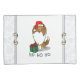 Merry Christmas Santa Claus Shetland Sheepdog - Funny, smiling Sheltie with a Santa hat and a Christmas present. HO HO HO! Copyright © Angi Laframboise. Cute Christmas holiday dog breed cartoon gifts for dog lovers.