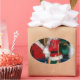 Santa Claus: The central motif showcases Santa in his traditional red suit, joyfully riding a horse, symbolizing the magic of Christmas and the joy of gift-giving.