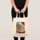The printing came out very well, better than I had anticipated. The natural color fabric is sturdy with strong seams and comfortable handles. This tote fits easily over my shoulder. As it is filled, the bottom flattens out--very cool! I would buy this product again. This grocery tote holds a lot of groceries! The image quality was very good. The colors were a little darker than I had expected. The darkness may have been due to printing on a natural color fabric rather than on white. The cat design is attractively centered on the tote. The spirit of the design is very lively, just as it appears on the Zazzle website.