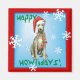 Celebrate the holiday season with a cute Scottish Deerhound puppy wearing a Santa hat and scarf amid snowflakes and the words, Happy Howlidays! Great holiday gift idea for Deerhound-loving family and friends.