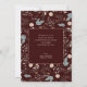 This vertical full photo Christmas card features elegant modern script and space on the back for a personal message. The backside offers a boho winter greenery pattern appearing in soft tans and teals on a deep dark burgundy background.