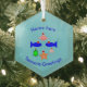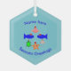 This ornament features a collection of sea creatures wearing santa hats. The marine animals include a pair of blue fish, a cheeky looking little pink crab, a yellow starfish, a sparkly jellyfish and a cute little green turtle. There is custom text so you can include the name of the recipient and a message. The default message reads Seasons greetings.