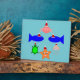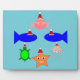 This awesome plaque features a collection of sea creatures wearing santa hats. The marine animals include a pair of blue fish, a cheeky looking little pink crab, a yellow starfish, a sparkly jellyfish and a cute little green turtle.
