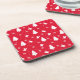 This cute Christmas Hard plastic coaster features a white Christmas tree, Christmas ornaments, and snowflakes in a seamless pattern on a red background. You can edit the background colour to your liking. Perfect for the Holiday Season!