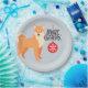 Holiday greetings from your favourite dog breed. Shiba Inu dog with "Merry Christmas" text and red Christmas ornament.