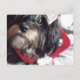 Cute Shih-poo dog dressed in a santa hat. The dogs name is Bella and she is my dog. She is a Shih-Tzu x Poodle and ever so cute. She was only a puppy when I took this photo of her last year. Christmas Shih-poo dog wearing and santa hat and scarf,