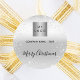 A faux silver looking background, decorated with faux glitter, sparkles. Personalize and add your business, company logo and a text. Text: Merry Christmas written with a modern hand letteres style script.