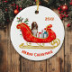 Christmas Sleigh Basset Hound Dog Ceramic Ornament