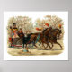 Beautiful vintage image of a Christmas sleigh ride. The sleigh is drawn by two chestnut horses in an elegant plumed livery and two ladies are enjoying their ride with the driver behind them.