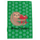 Christmas Sloth with Gift Green Snowflake Medium Gift Bag