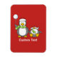 A little penguin cartoon with snowball and a fainted one. Both wearing green scarfs and santa hats.