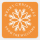 Seal your Christmas cards and gifts with these cute custom stickers, featuring a holiday red background with a white snowflake encircled by your custom greeting and name.