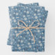 Wrap your holiday gifts in winter charm with this personalized blue snowflake wrapping paper. A soft denim-blue background sprinkled with white snowflakes and silver accents gives this design a cozy, classic Christmas feel.