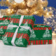 Get Christmas wrapped up with this unique white snowflake tree and red and green striped patterned Christmas wrapping paper. Customise with your own greeting and company or family name. Currently reads Happy Holidays from the Smiths. Uniquely designed by Sarah Trett.