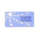 These labels feature a large snowflake with rows of smaller similar snowflakes extending from it. The background is pale frosty blue with soft layers of blue shadow.