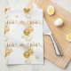 Pretty gold Christmas balls, Christmas trees, gold glitter snowflakes and bright shining stars. Create the perfect dish towel for your Holiday kitchen or as a gift.