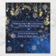 Pretty dark blue wine label with crystal look snowflakes and gold hanging stars. Personalize with your text to create a Holiday Gift for family, friends and business.