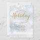 A modern party invitation featuring falling snowflakes on a snowy background with a Christmas greeting set in an elegant gold script text. Personalize by adding your Christmas Holiday party celebration details. Designed by Thisisnotme©
