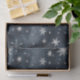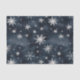 White and silver snowflakes fall on a dark blue night sky in this Christmas winter wonderland watercolor that is just right for your elegant holiday tissue paper. This is the third of three vintage designs that differ a little especially in the sky tone: This one features a dark blue background sky among clouds.