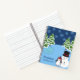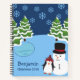 Celebrate the Christmas season with this personalized holiday notebook. Notebook features a penguin in a cozy hat, a smiling snowman, trees covered in snow, falling snowflakes, and an icy pond. In the bottom left you may customize with your name or your child's name as well as the holiday and the year. This notebook will be treasured for many winter seasons to come!