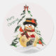 Christmas Snowman and Birds Round Sticker