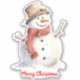 A colourful sticker featuring a picture of a festive snowman. Below the picture is the greeting 'Merry Christmas' in red script typography. The design is cut to match the shape of the picture. These seasonal stickers make a fun and elegant addition to your holiday stationery, for invitations, envelopes or craft projects