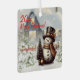 Christmas Metal Square Ornament featuring cheerful snowmen depicted against a serene blue backdrop. The festive ornament showcases snowmen figures, a wintry tree illustration, and delicate snowflake designs. This square metal ornament is perfect for the Christmas season, displaying snowmen set against a blue background, along with a winter tree and snowflake accents. The design evokes a joyful winter atmosphere.