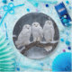 White snowy owls in snowflakes on a winter tree branch for Christmas