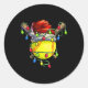 Christmas Softball Xmas Christmas Lights Softball Classic Round Sticker