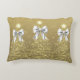 Christmas Sparkling Trees Gold Faux Silver Bow Accent Pillow