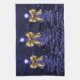 Christmas Sparkling Trees Navy Blue Faux Gold Bow Kitchen Towel