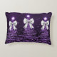 Christmas Sparkling Trees Purple Faux Silver Bow Accent Pillow