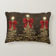 Christmas Sparkling Trees Red Gold Faux Bow Accent Pillow