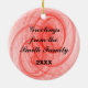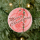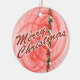 Red fractal swirls, ribbons and stars complete one side of a traditional festive red and green Christmas design on this round ornament. This design has white outlined red "Merry Christmas" text on one side and you can personalize the opposite side. Fill in the template blocks with your words to personalize that side or completely remove the text. Click "Customize it!" to select a font style, colour and size you prefer.