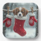 Christmas St. Bernard Puppy In a Red Stocking Paper Plate