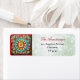 Bright and vibrant stained glass design of multicolored Christmas star mandala in a red frame. With pale green glitter effect background and cute handwriting-style font. Customize to include your own name and address details.