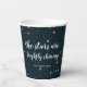 These Christmas paper cups are perfect for adding a touch of holiday cheer to your Christmas party. Against a dark blue background, shining gold stars pop and catch the eye. The stars are brightly shining, just like the joy and magic of the holiday season. And with the option to customize with your family name, it makes for a truly unique and special addition to your party decor.