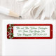 Épée de Noël et étiquettes d'adresse de retour sainte. Etoiles de mer blanches et conception sainte avec rouge, étoiles scintillantes arrière - plan. Le texte vert est imprimé sur un rectangle blanc en utilisant un style de police moderne en vert foncé.