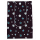 Seamless Christmas pattern, blue stars and snowflakes on dark background.