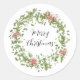 Adorn your gifts and cards with this watercolor wreath sticker. Green and red wreath and a "Merry Christmas" message in the centre. Watercolor design created by Night Sky Paperie.