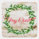 This small size square sticker is shown in a festive Christmas holiday wreath print.