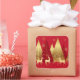 This sticker is shown with a festive Christmas holiday trees and deer print.