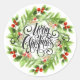 This small size round sticker is shown with a festive Christmas holiday holly berry wreath print.