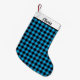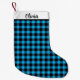 This Christmas stocking is shown in a black and blue color buffalo plaid print.