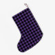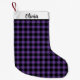 This Christmas stocking is shown in a black and purple color buffalo plaid print.