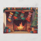Christmas Stockings Hanging Over Fireplace Holiday Postcard