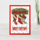 A bright, colourful Christmas card: A Victorian motif showing three decorated x-mas stockings hanging from the fireplace. Fully customizable.