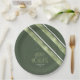 Part of a coordinating design set for Christmas, this paper plate features diagonal stripes with an outdoorsy theme in shades of moss green and white. Optional 'Happy Holidays' text and a template have been provided to add your name and/or other text. Search ID861 thru ID864 to see additional color options and other products in this modern, Christmas design set.